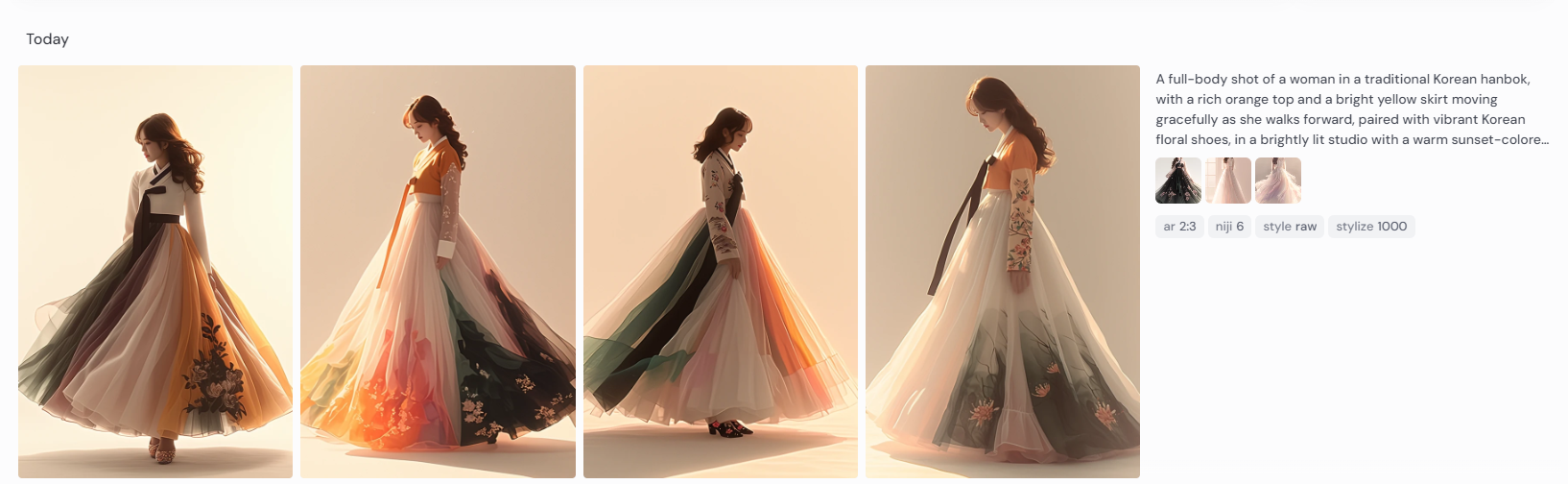 미드저니와 같은 AI 도구를 활용하면 상상 속의 이미지를 구체적으로 구현할 수 있다는 점이 정말 매력적이에요. 한복의 아름다움을 더 많은 사람들과 공유하고 싶어 이렇게 작업을 마치고 글로 정리해봤어요. 다음에는 또 새로운 스타일로 찾아올게요!